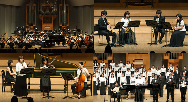 演奏面においては、第一線で演奏家として活躍する実技系の教員が日々自身の演奏会を行うことで自らの演奏技術の向上に努めており、それを本学での教育に生かしています。